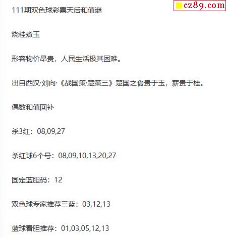 25年福彩雙色球111期 彩票天后和值謎