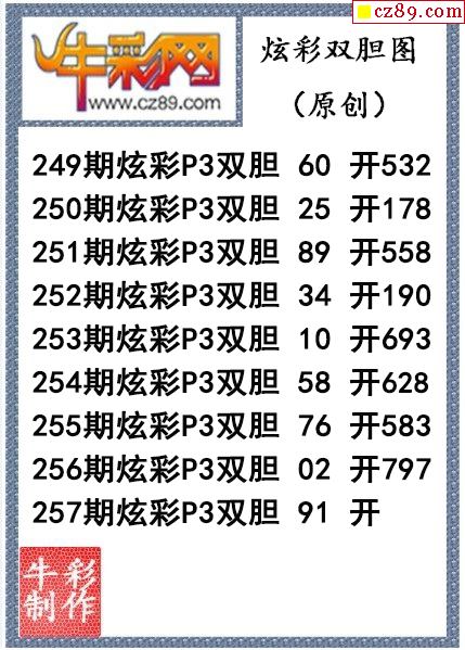 炫彩雙膽257期今天P3圖謎(原創)