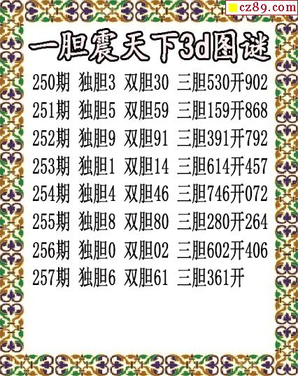 一膽震天下獨膽2025257期3d圖謎(原創)