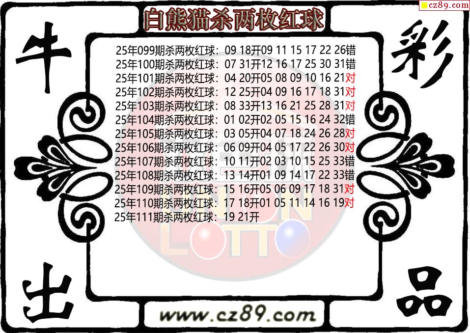 雙色球111期白熊貓殺兩枚紅球圖迷