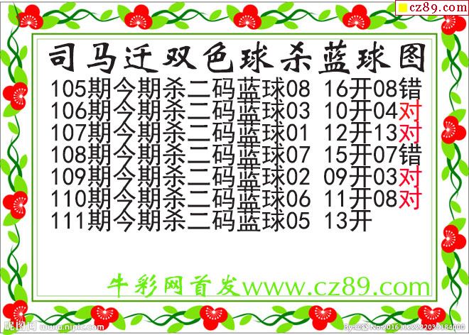 司馬遷殺兩碼藍球111期雙色球圖謎