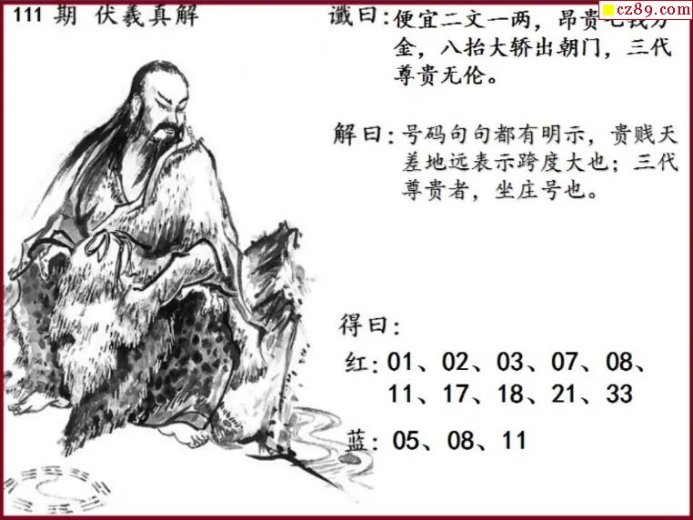 雙色球2025年圖迷111期 伏羲真解圖