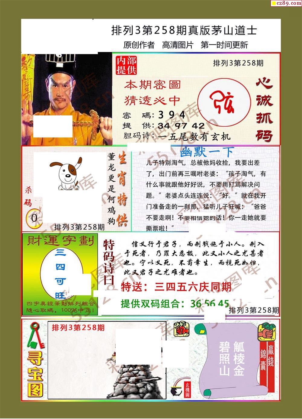茅山道士258期體彩p3圖謎