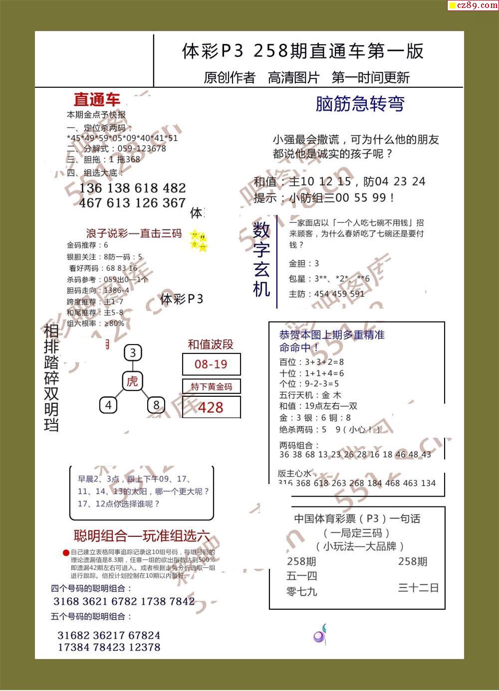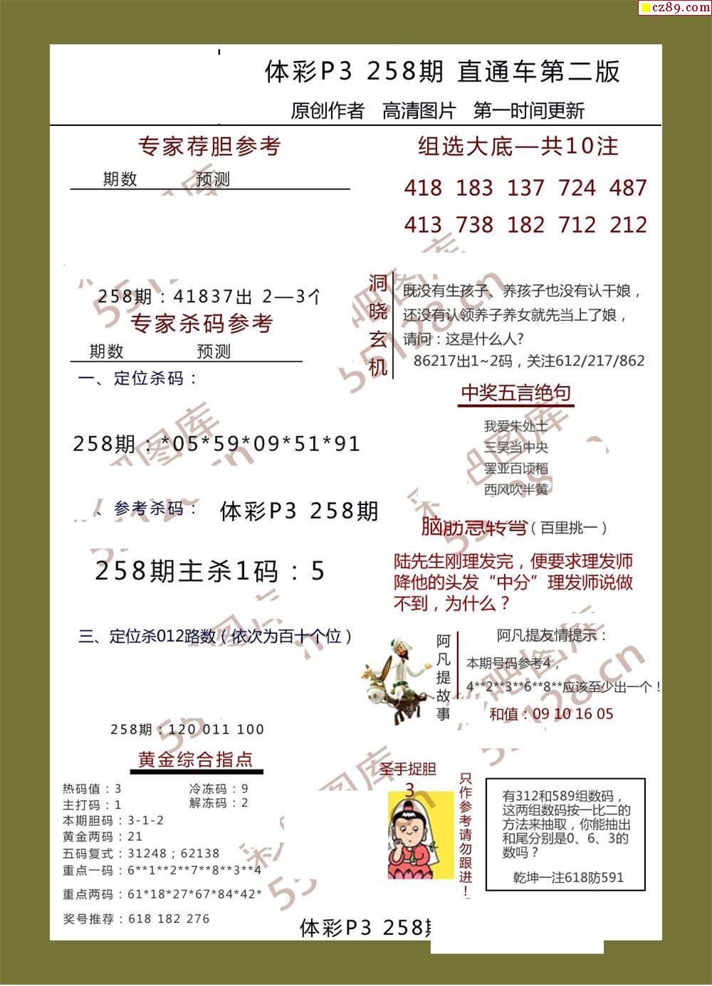 直通車AB版258期體彩p3圖謎
