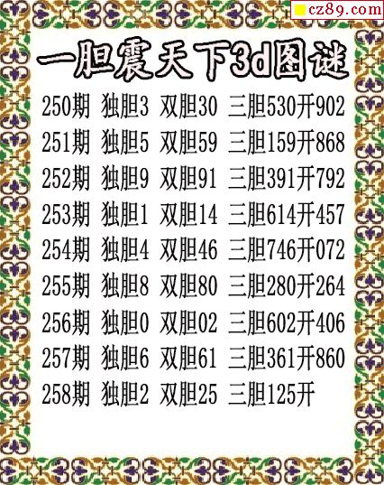一膽震天下獨膽2025258期3d圖謎(原創)