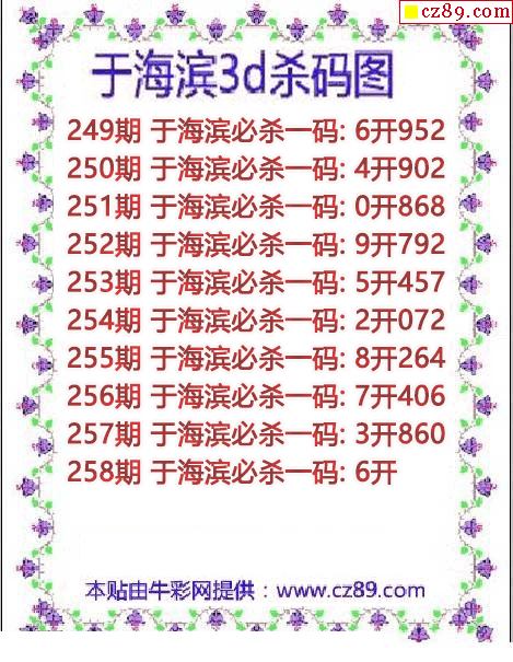 于海濱殺碼2025258期3d圖謎(原創)
