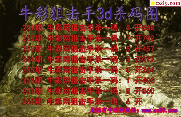 牛彩狙擊手殺碼2025258期3d圖謎(原創)