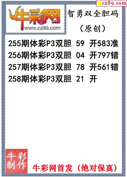 智勇雙全雙膽258期今日P3圖迷(原創)