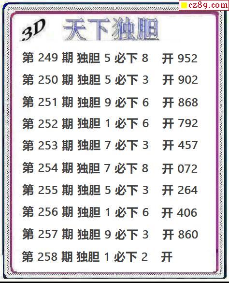 天下獨膽2025258期3d圖謎