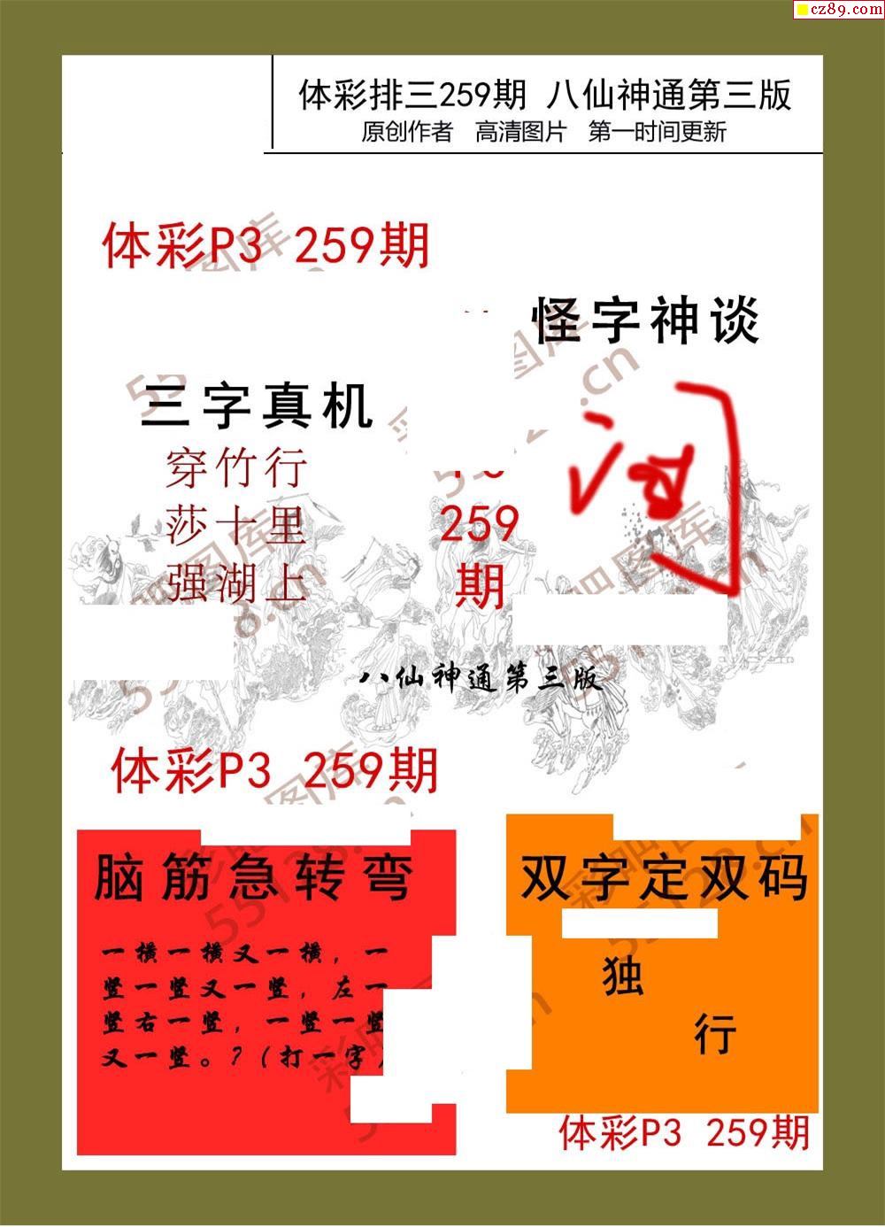 八仙神通系列259期體彩p3圖迷