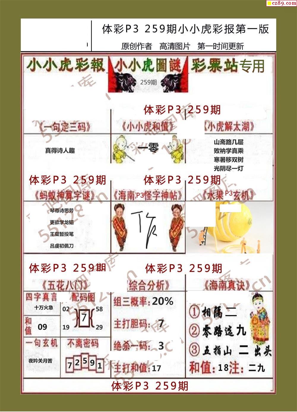 小小虎彩報259期體彩p3圖謎