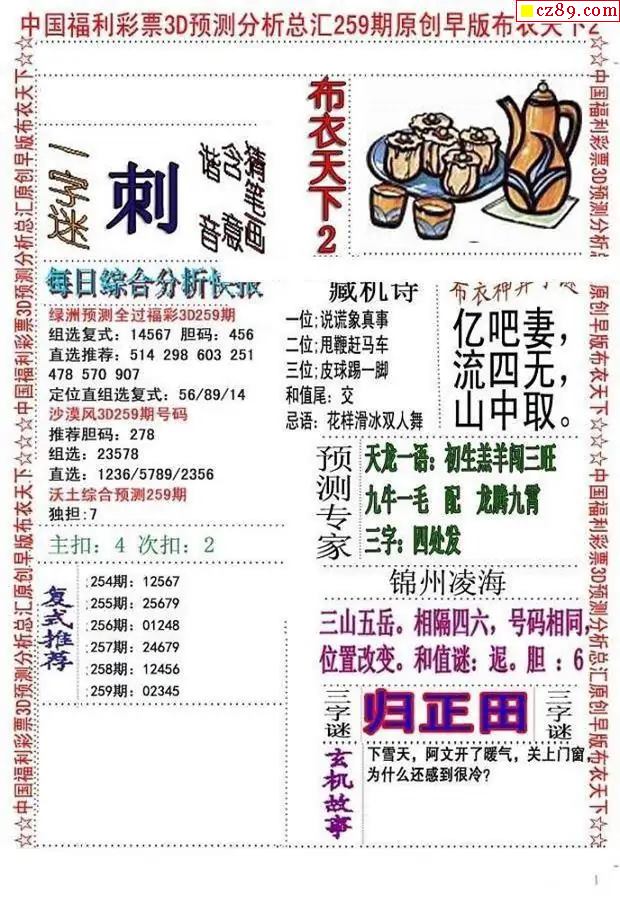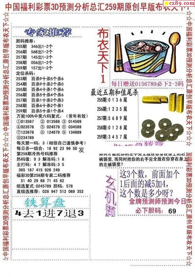 早版布衣2025259期3d圖謎