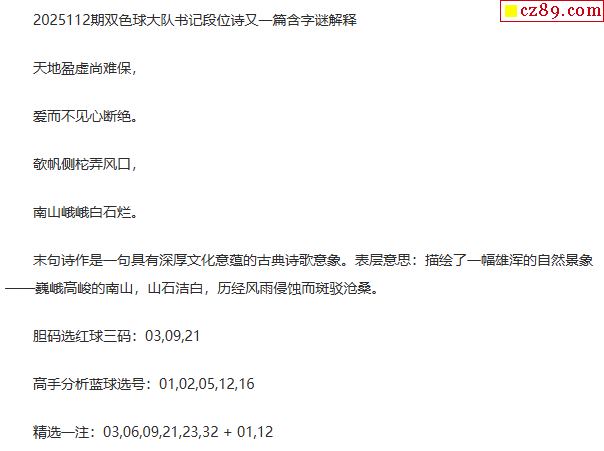 25年福彩雙色球112期 大隊書記段位詩另一篇