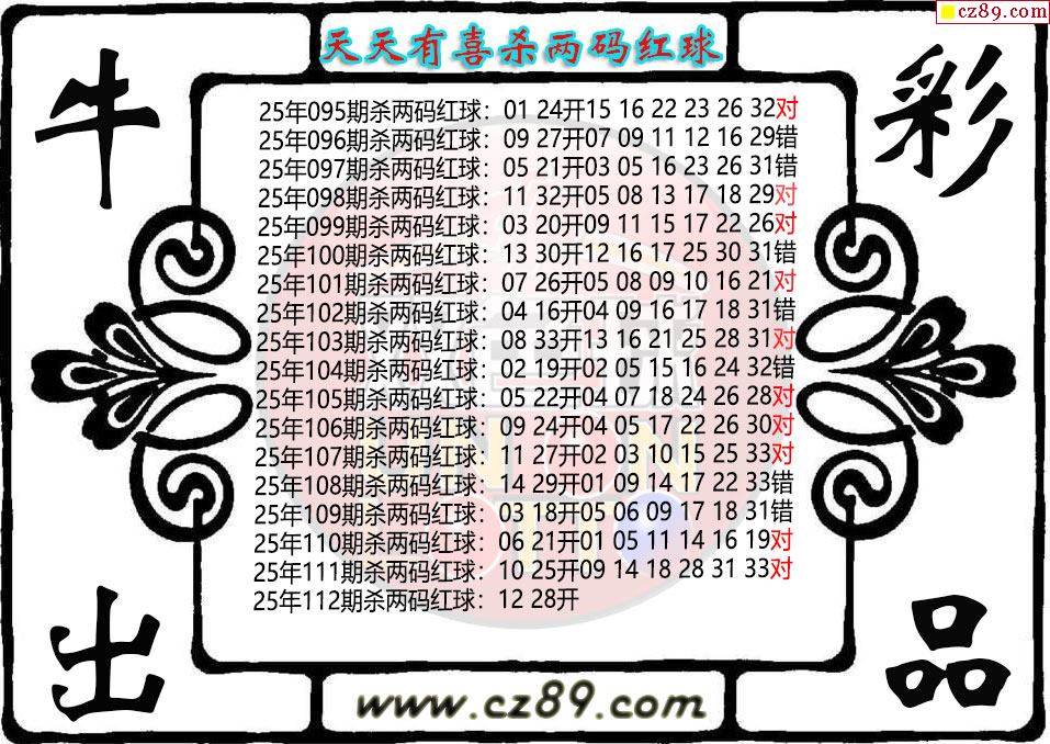 雙色球112期天天有喜殺兩碼紅球圖迷