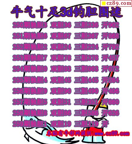 牛彩釣膽圖2025259期3d圖謎(原創)