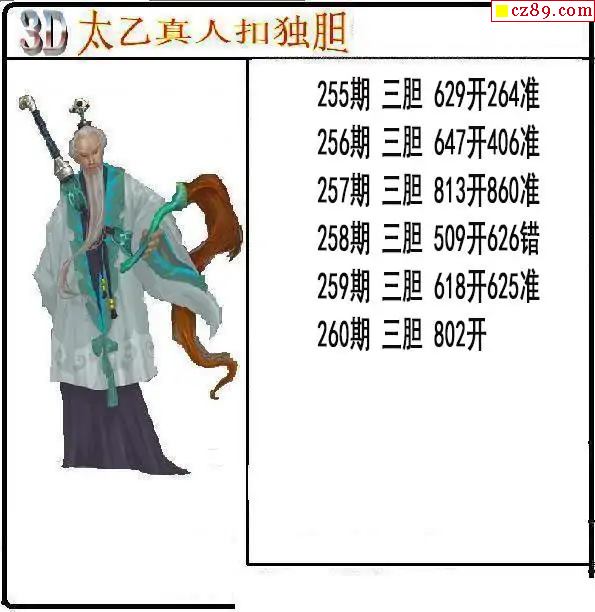 太乙真人獨膽2025260期3d圖謎