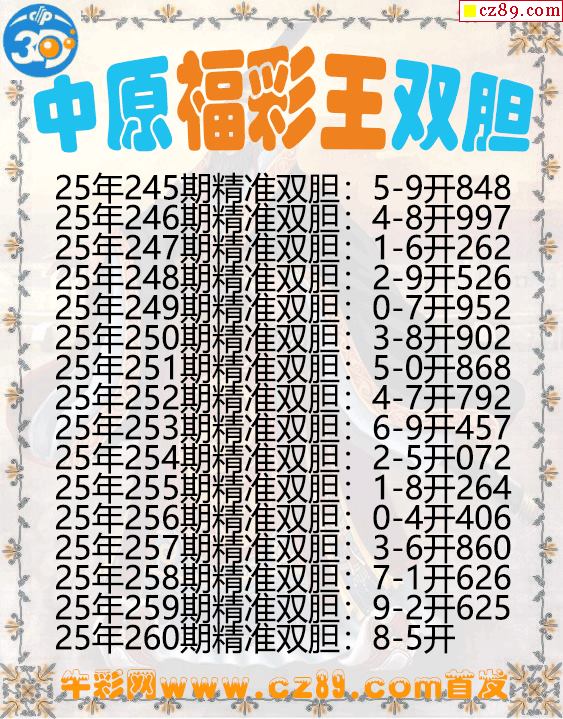中原福彩王雙膽260期3d圖謎
