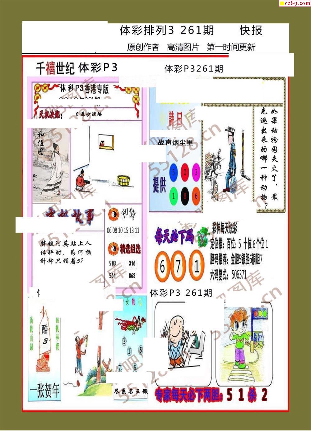 香島快報261期體彩p3圖謎