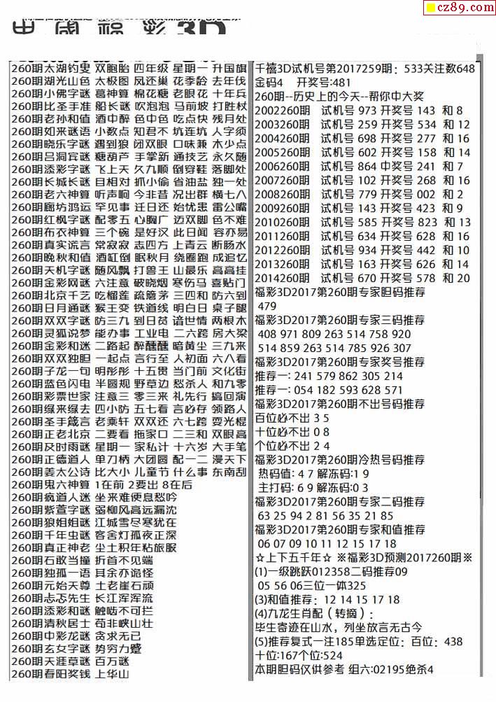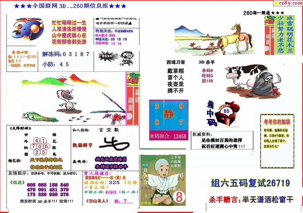 殺手+鑫馬快報+字迷匯總25年260期3d圖謎