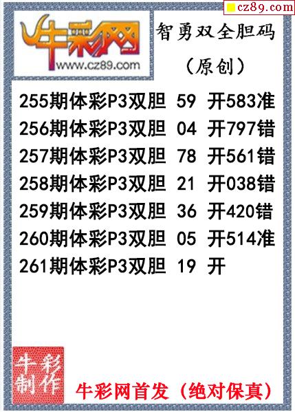 智勇雙全雙膽261期今日P3圖迷(原創)