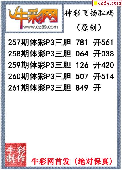 神彩飛揚三膽261期體彩P3圖謎(原創)