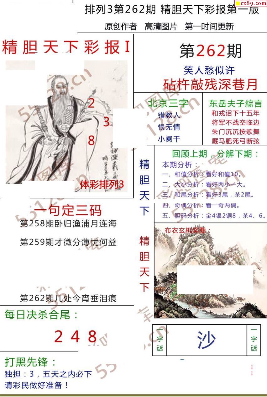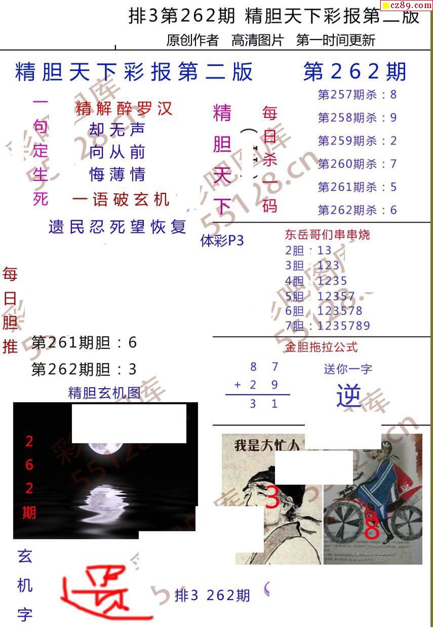 精膽天下彩報262期體彩p3圖謎