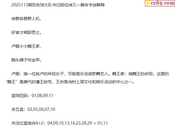 25年福彩雙色球113期 大隊書記段位詩另一篇