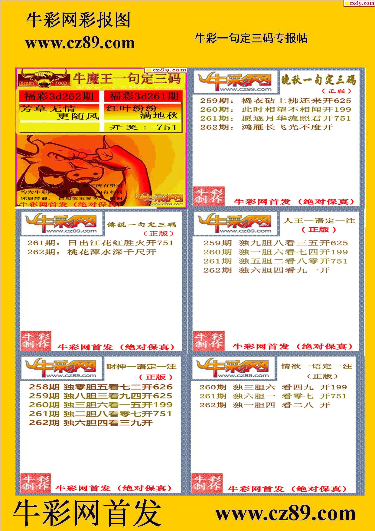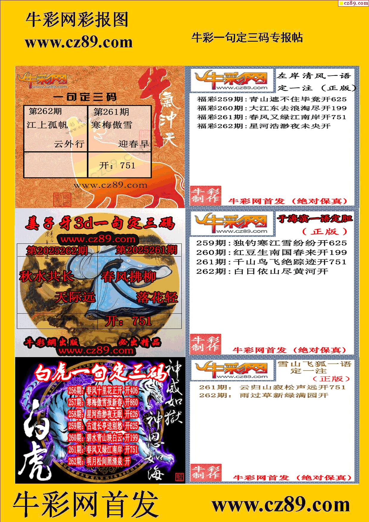 2025262期牛彩專家一句定三碼彩報