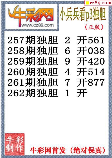 小兵兵獨膽262期體彩P3圖謎(原創)
