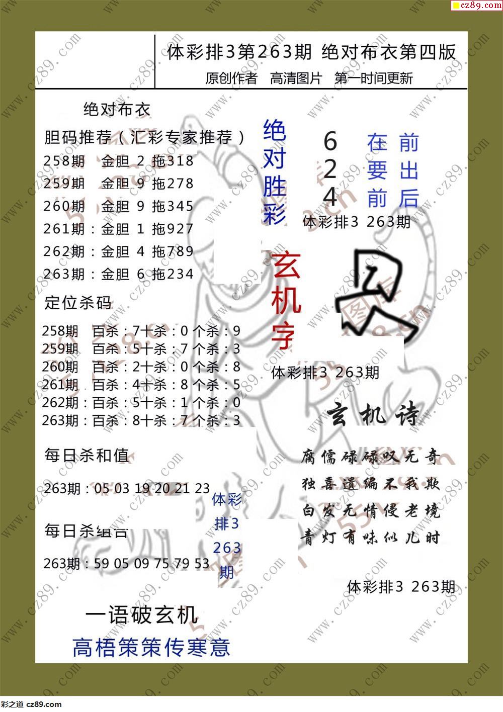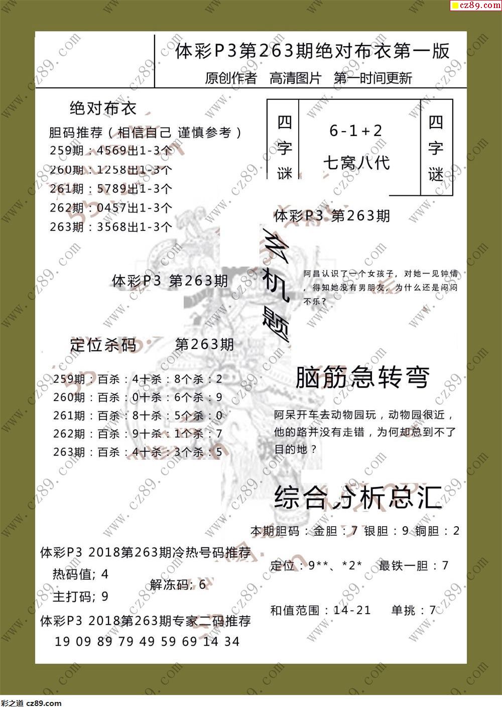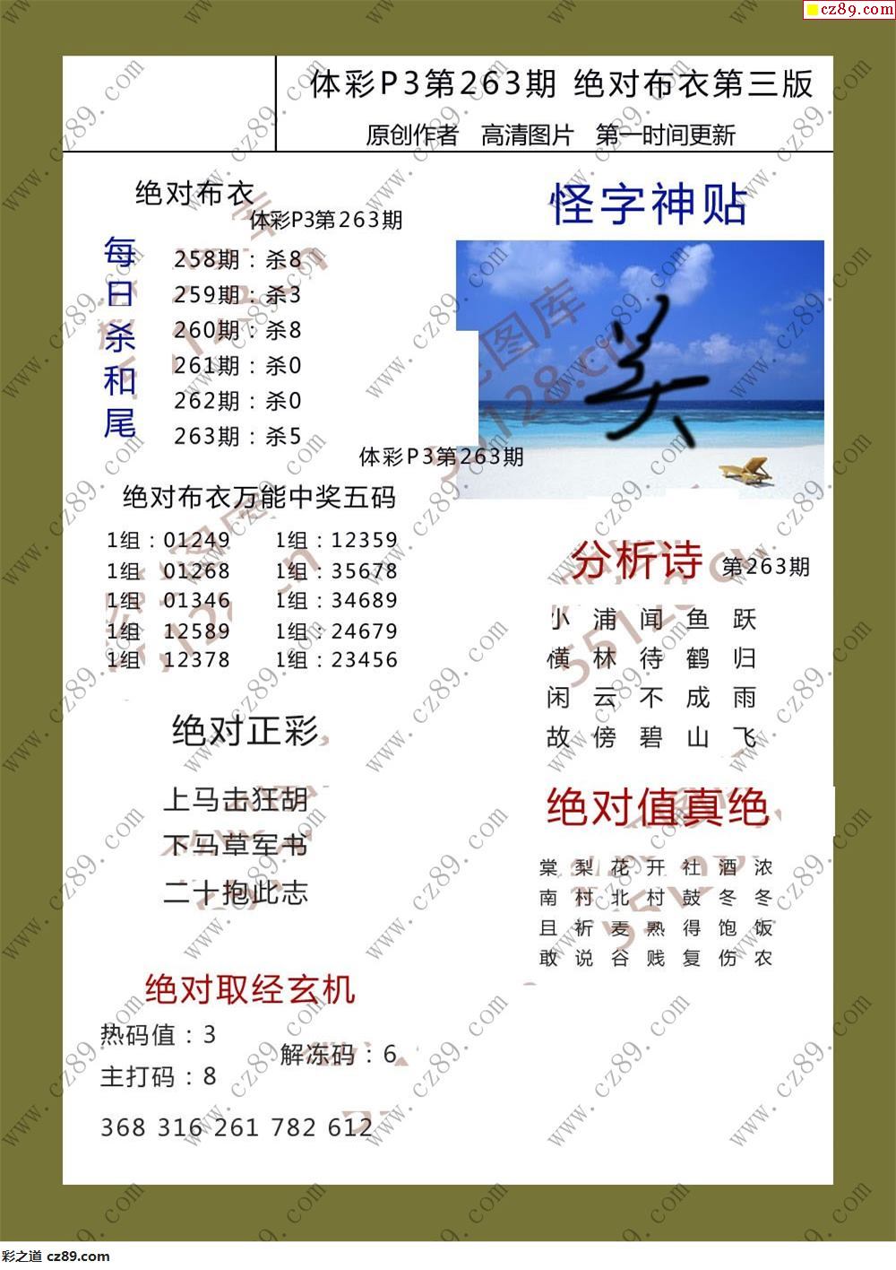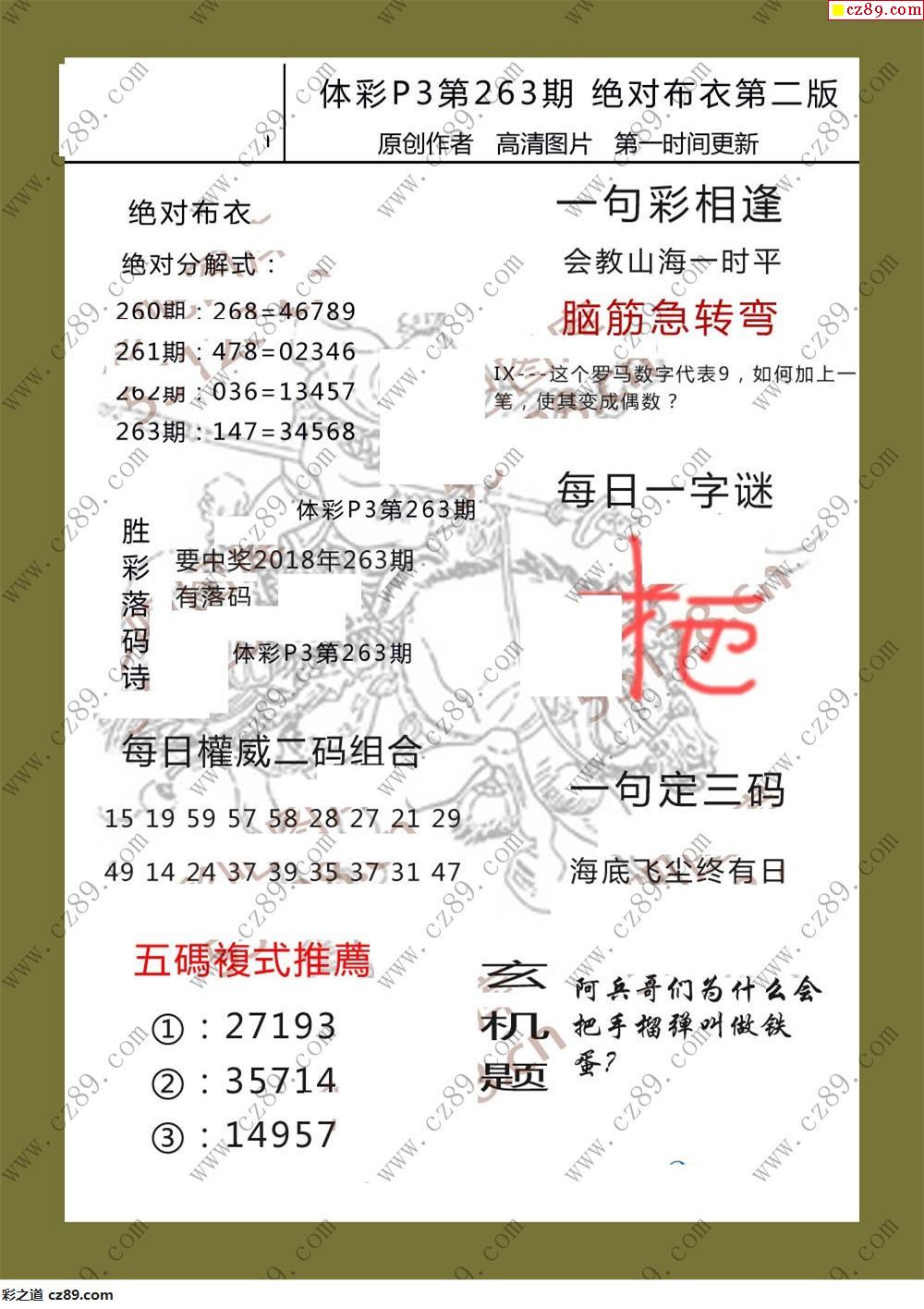 絕對布衣263期體彩p3圖謎