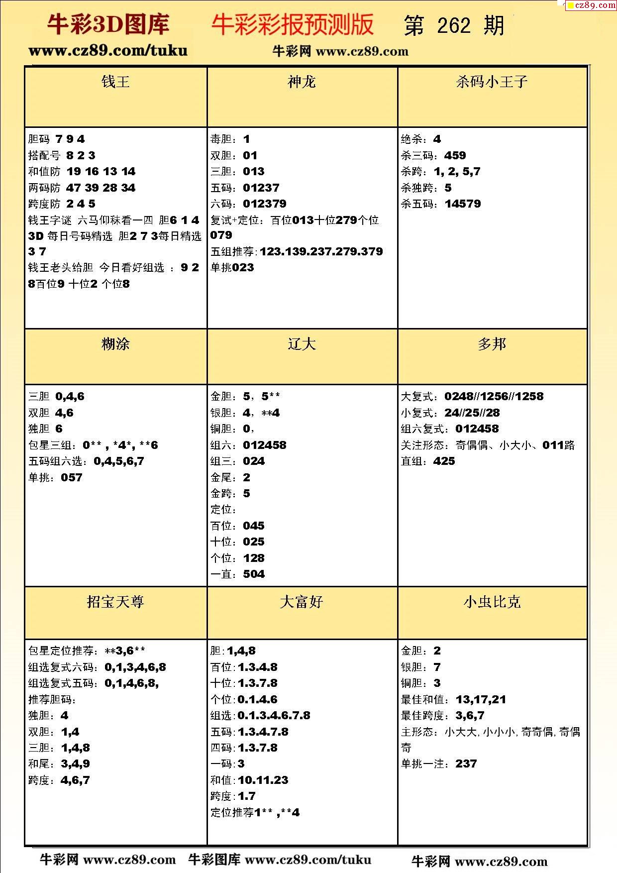 牛彩版3D預測彩報圖25年262期打印版