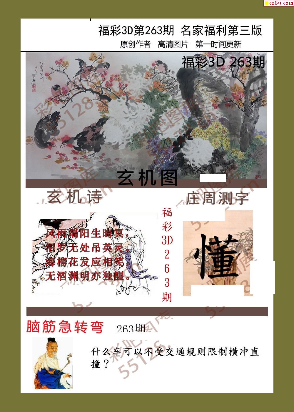 福彩名家福利彩票3d25年263期圖謎