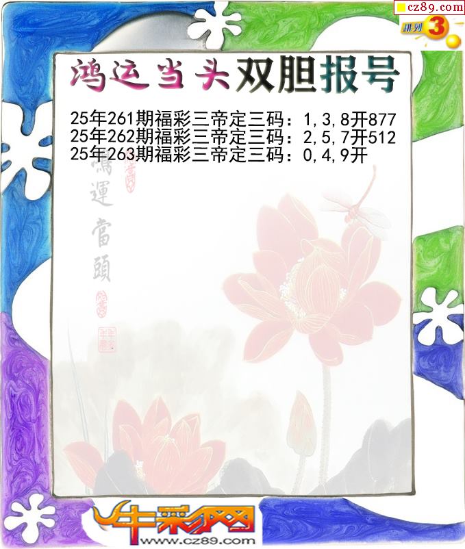 鴻運當頭雙膽報號263期體彩P3圖謎