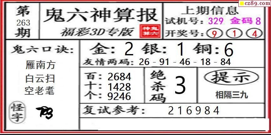 鬼六神算2025263期3d圖謎