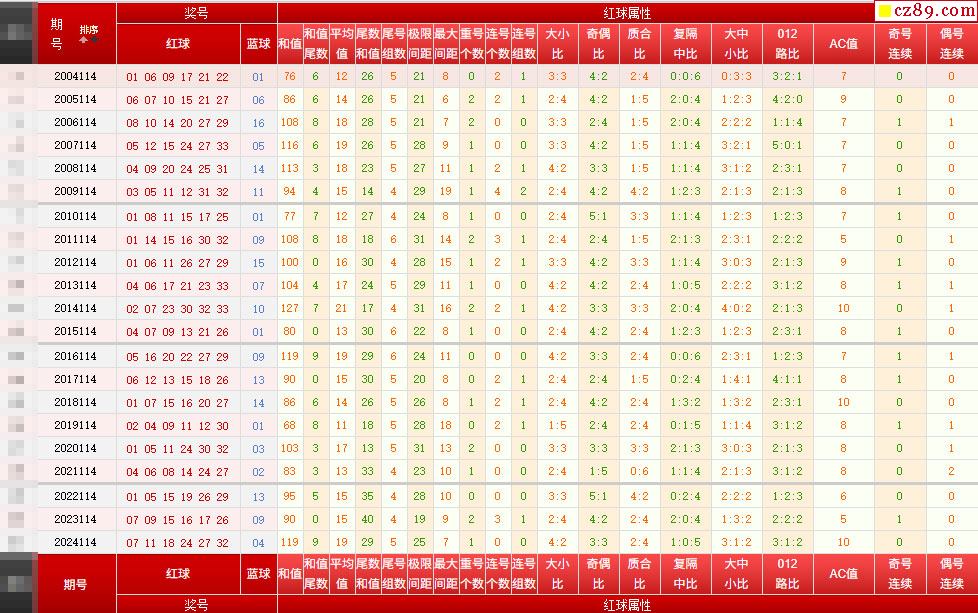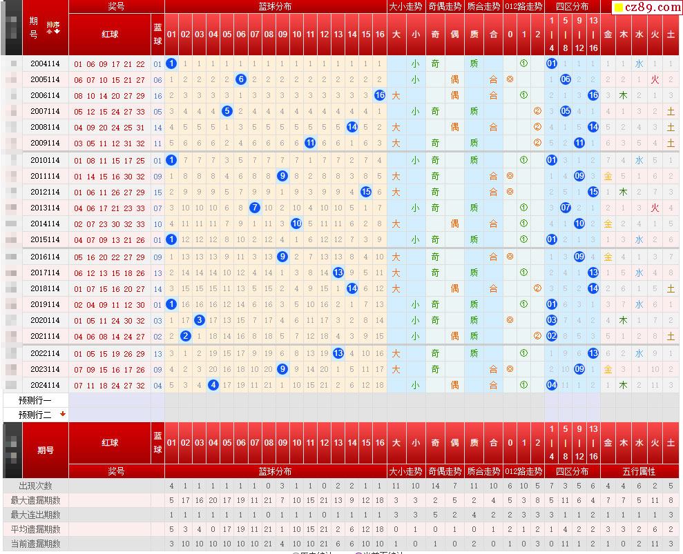 114期期雙色球歷史同期對比圖