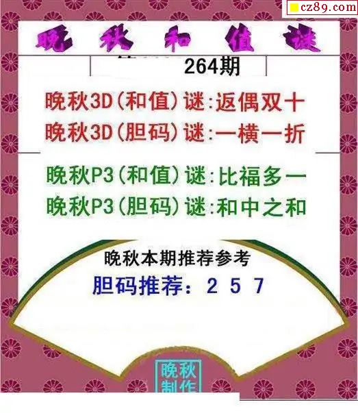 晚秋和值謎2025264期3d圖謎