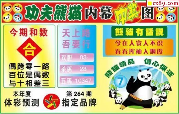 體彩P325年圖迷264期 功夫熊貓內幕中獎圖