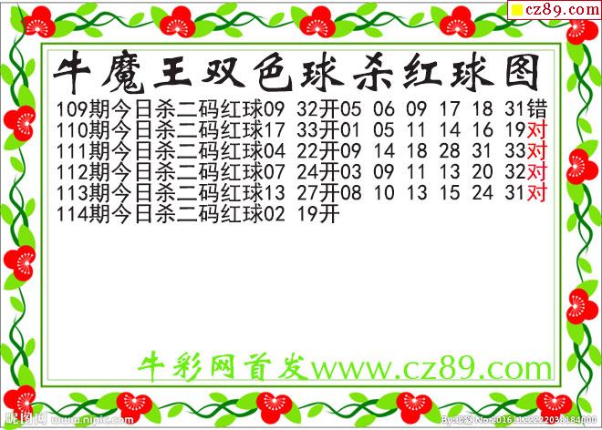 牛魔王殺兩碼紅球114期雙色球圖謎