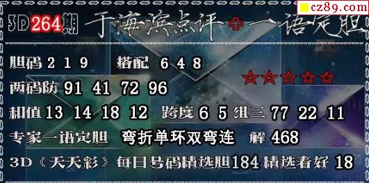 3D 《天天彩》每日號碼精選膽184 精選看好18