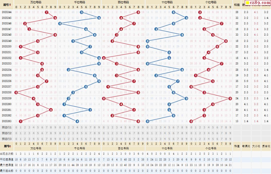 264期體彩排列5近期歷史號碼圖表