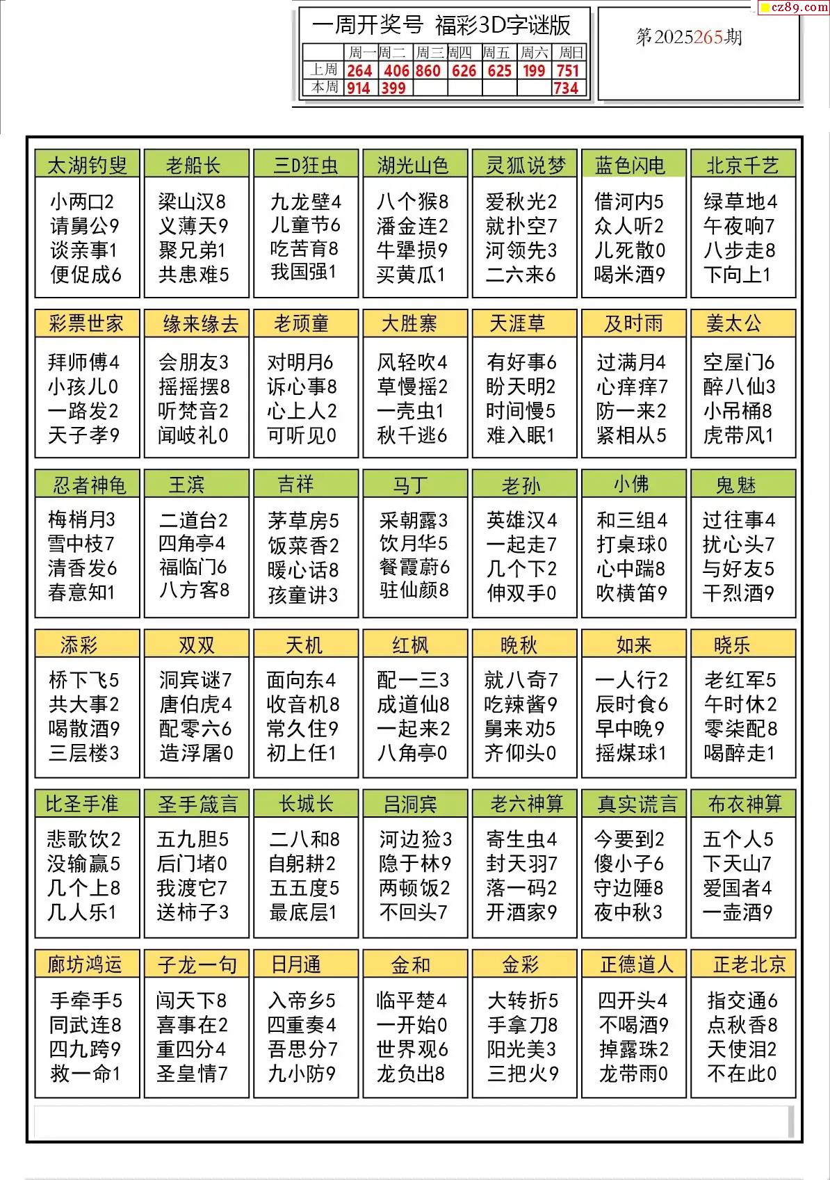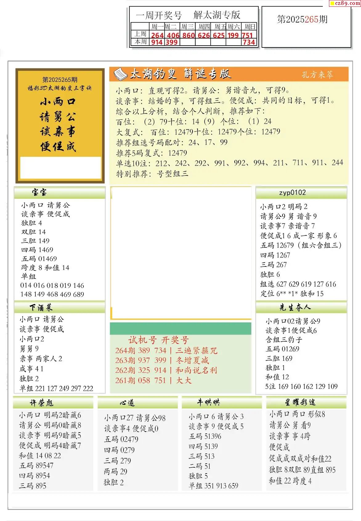 2025265期解太湖3d字圖迷匯總報