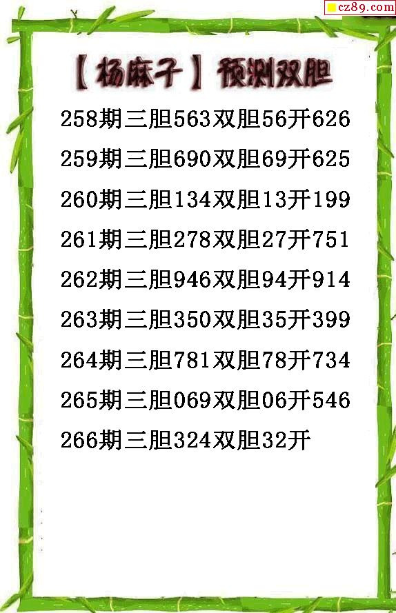 楊麻子雙膽2025266期3d圖謎