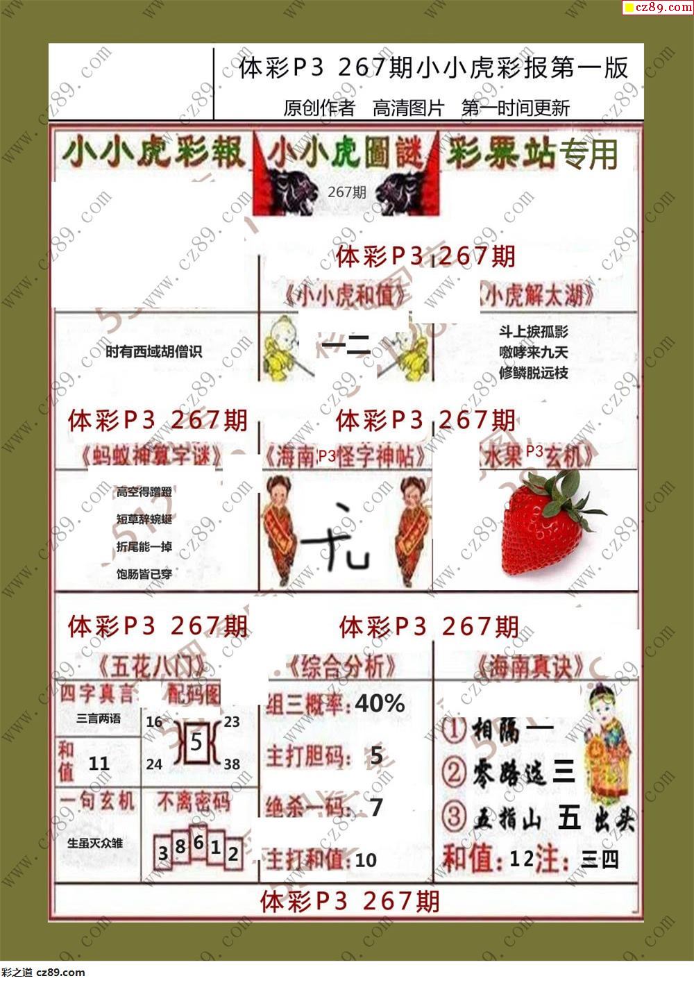小小虎彩報267期體彩p3圖謎