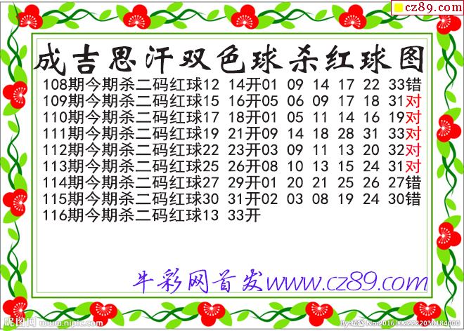 成吉思汗殺兩碼紅球116期雙色球圖謎