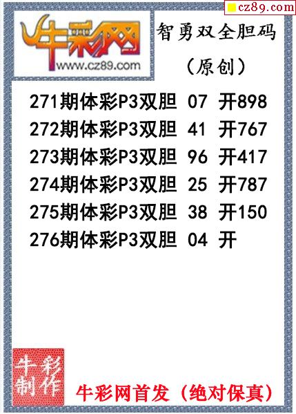 智勇雙全雙膽276期今日P3圖迷(原創)