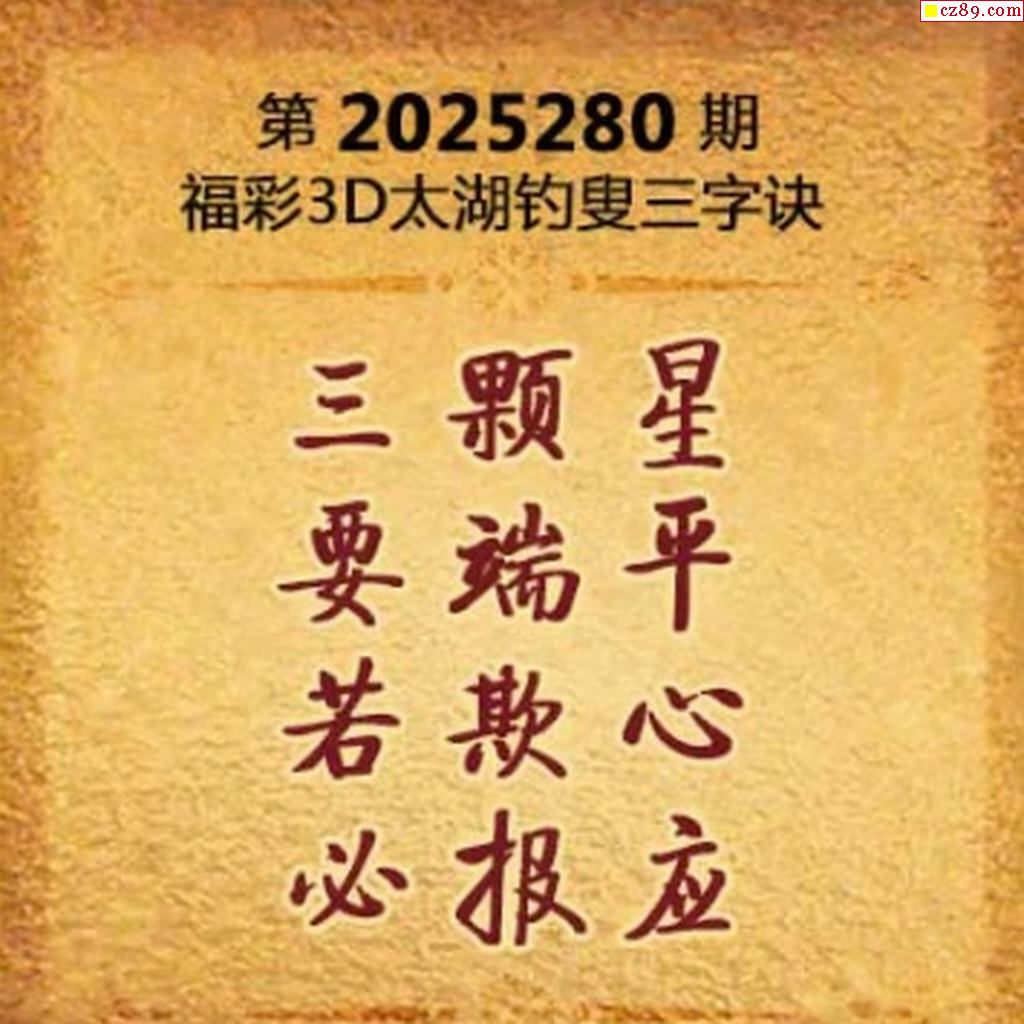 25年280期3d字謎太湖釣叟三字訣《保真》