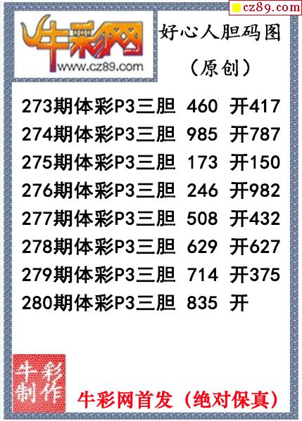 好心人送膽280期體彩p3圖謎(原創)