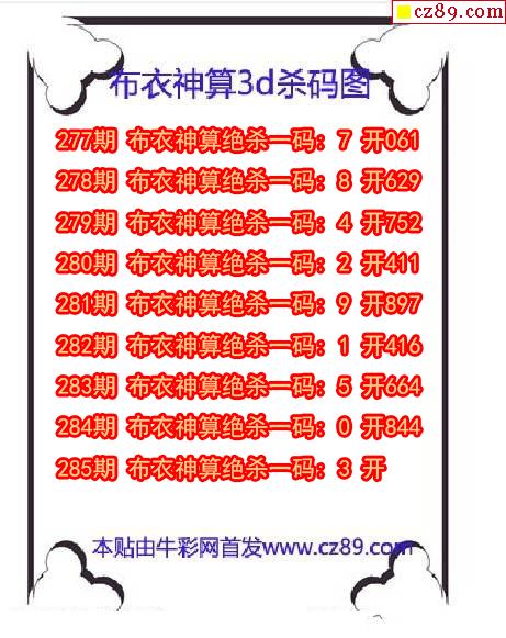 布衣神算殺碼2025285期3d圖謎(原創)