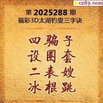 25年288期3d字謎太湖釣叟三字訣《保真》