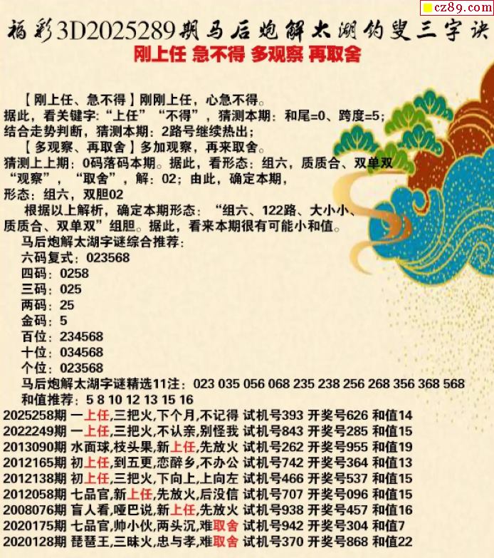 馬后炮解25年289期3d太湖釣叟之 剛上任